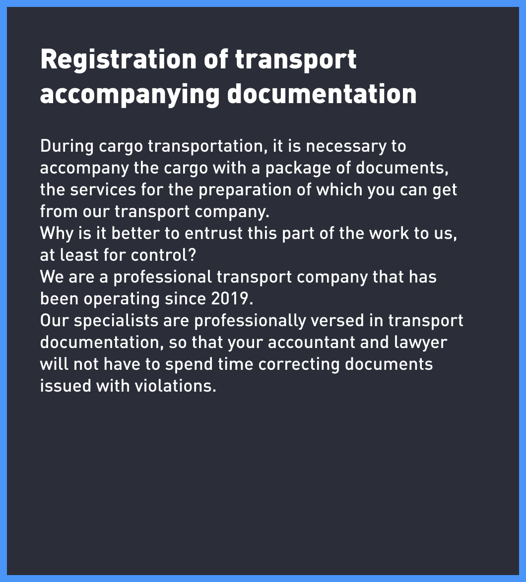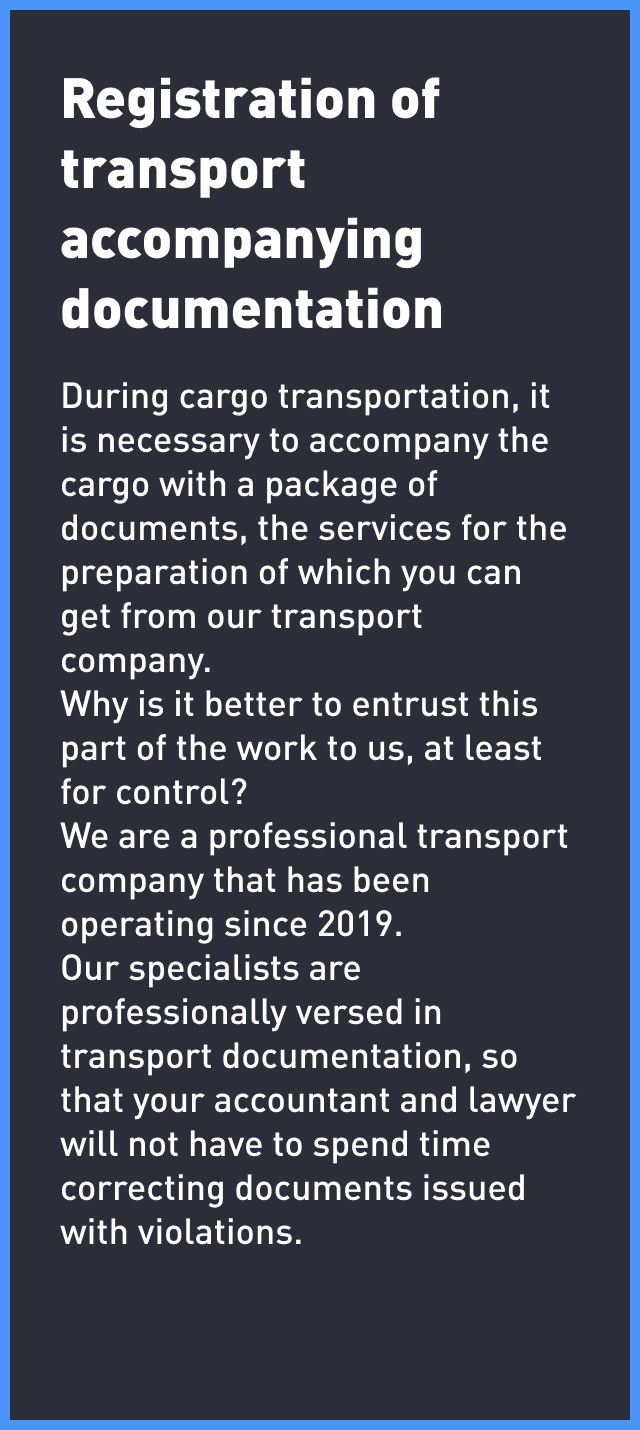 Specialized transport is selected for each cargo, a route is developed that allows the cargo to be delivered to its destination.